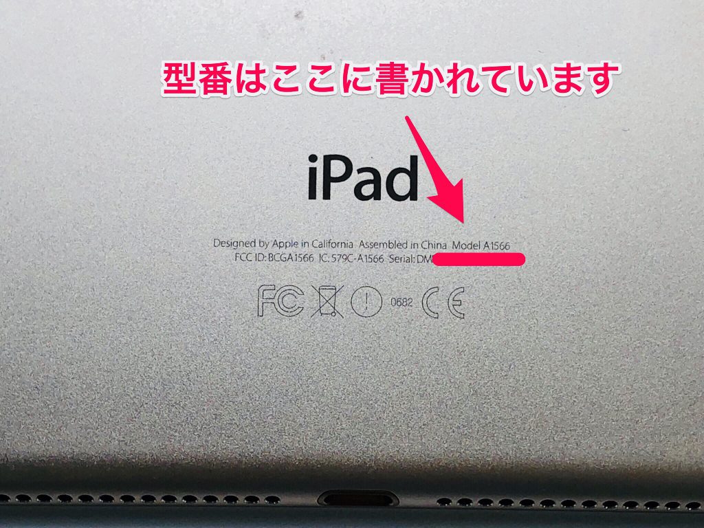 iPadの型番(モデル番号)はiPad本体に書かれています