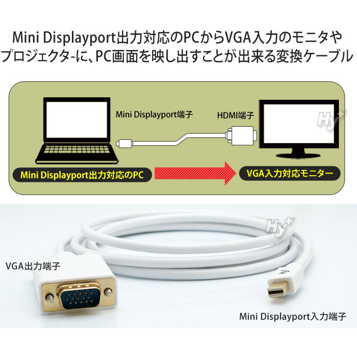 【商品名】Hy+ Mini Displayport to VGA 変換ケーブル 1.8m HY-MDPVGA1
