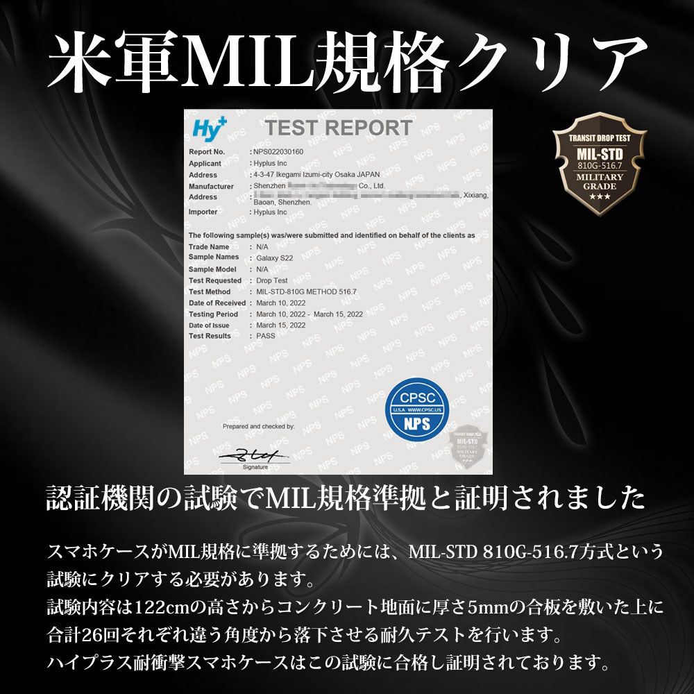【スマホを落としてしまっても衝撃を最小限に抑えるケース】スマホが日常の生活に溶け込む現代で、落下などによるスマホの破損は販売台数に比例して増えている状況です。本ケースの角には落下時の衝撃を吸収するエアポケットを備えており、万が一スマホを落としてしまった場合でも、落下時のダメージを最小限に抑えることが可能となっており、その耐衝撃性能は第三者機関の試験による米軍MIL規格をクリアするほど高いことが証明されております。また、Galaxy A53 SC-53C SCG15専用にオリジナル設計しているためぴったりとフィットし、保護性能には欠かせないポイントとなっています。