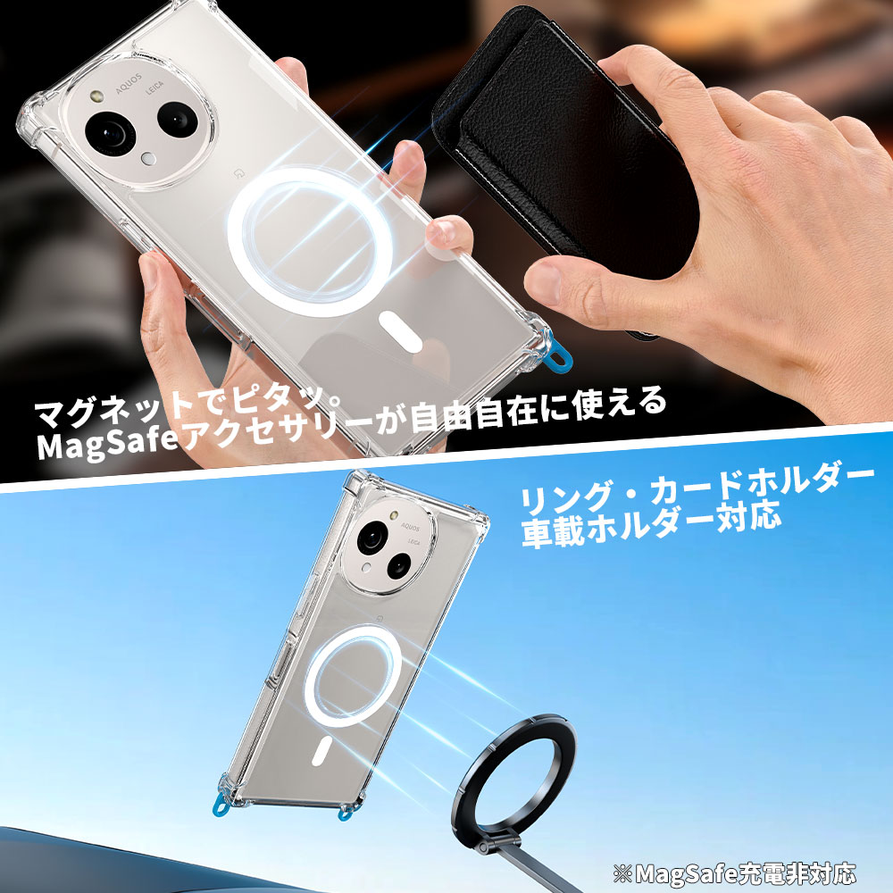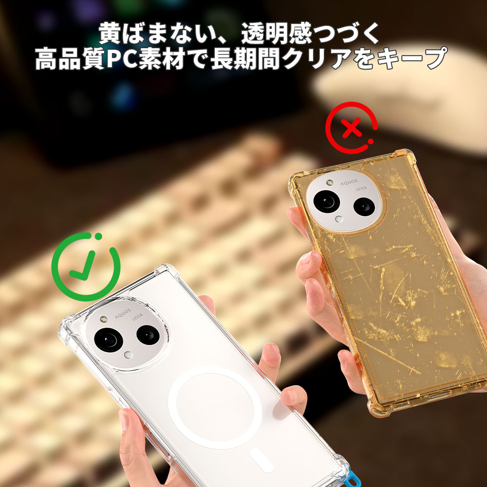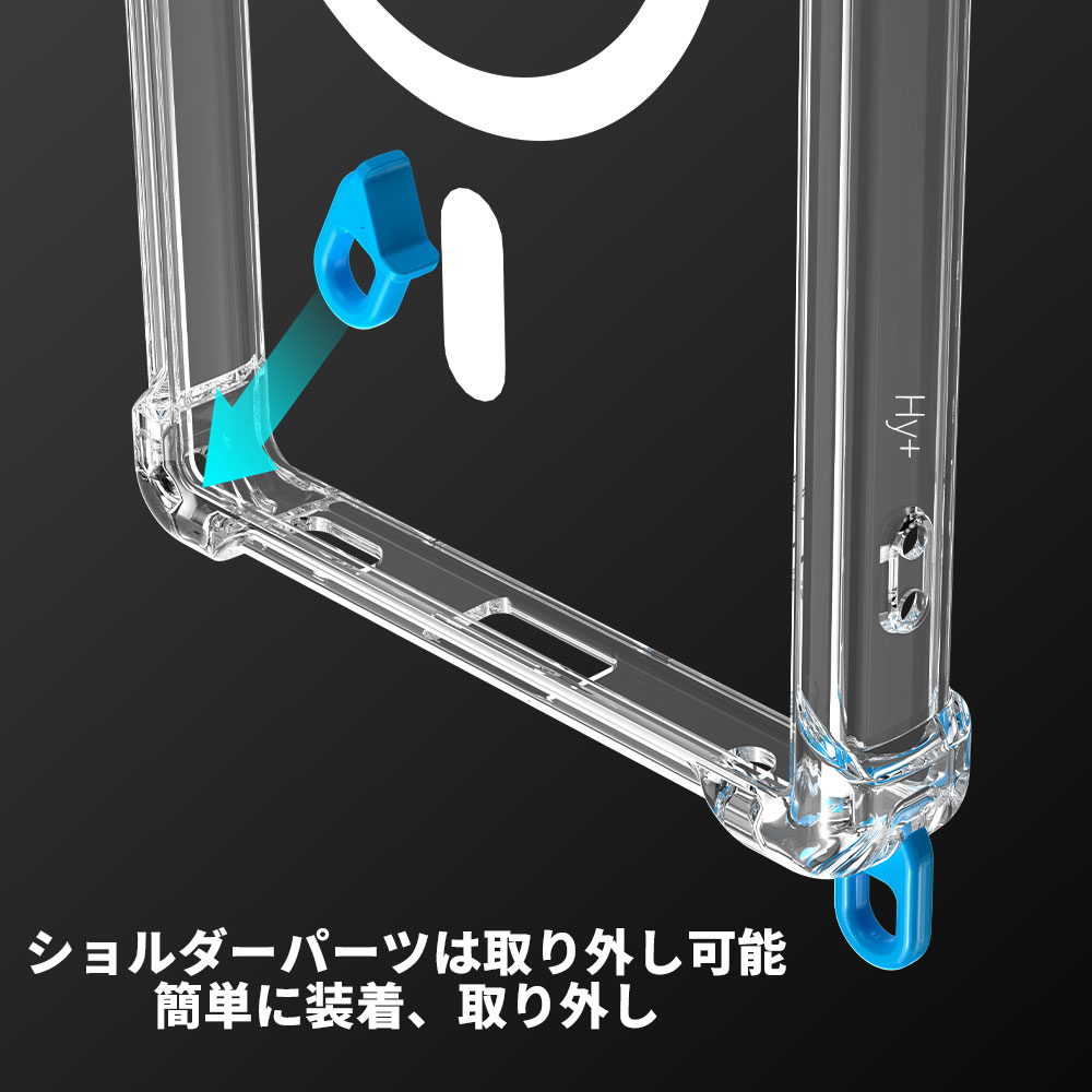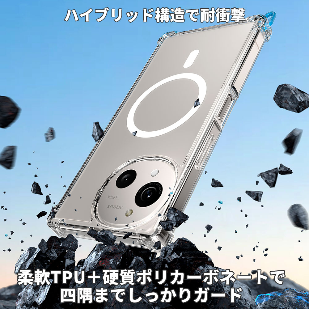 Hy+ AQUOS R10 AQUOS R9 ケース SH-51F / A501SH / SH-M31 / SH-51E / SH-M28 対応 MagSafe ケース 耐衝撃 クリア ハイブリッド 背面ポリカーボネート 側面TPU 薄型 軽量 ショルダーストラップ対応 取り外し可能パーツ付き