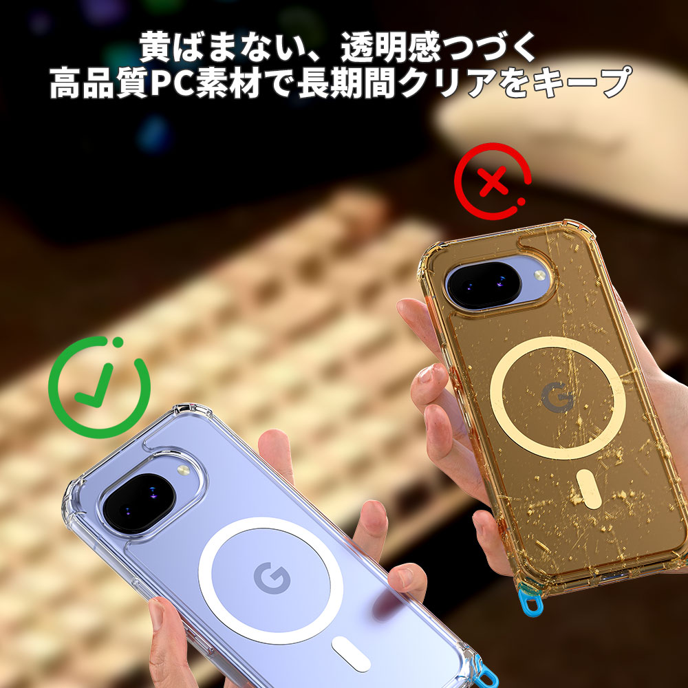 【商品名】Hy+ Google Pixel 10a ケース ピクセル10a 対応 MagSafe ケース 耐衝撃 クリア ハイブリッド 背面ポリカーボネート 側面TPU 薄型 軽量 ショルダーストラップ対応 取り外し可能パーツ付き