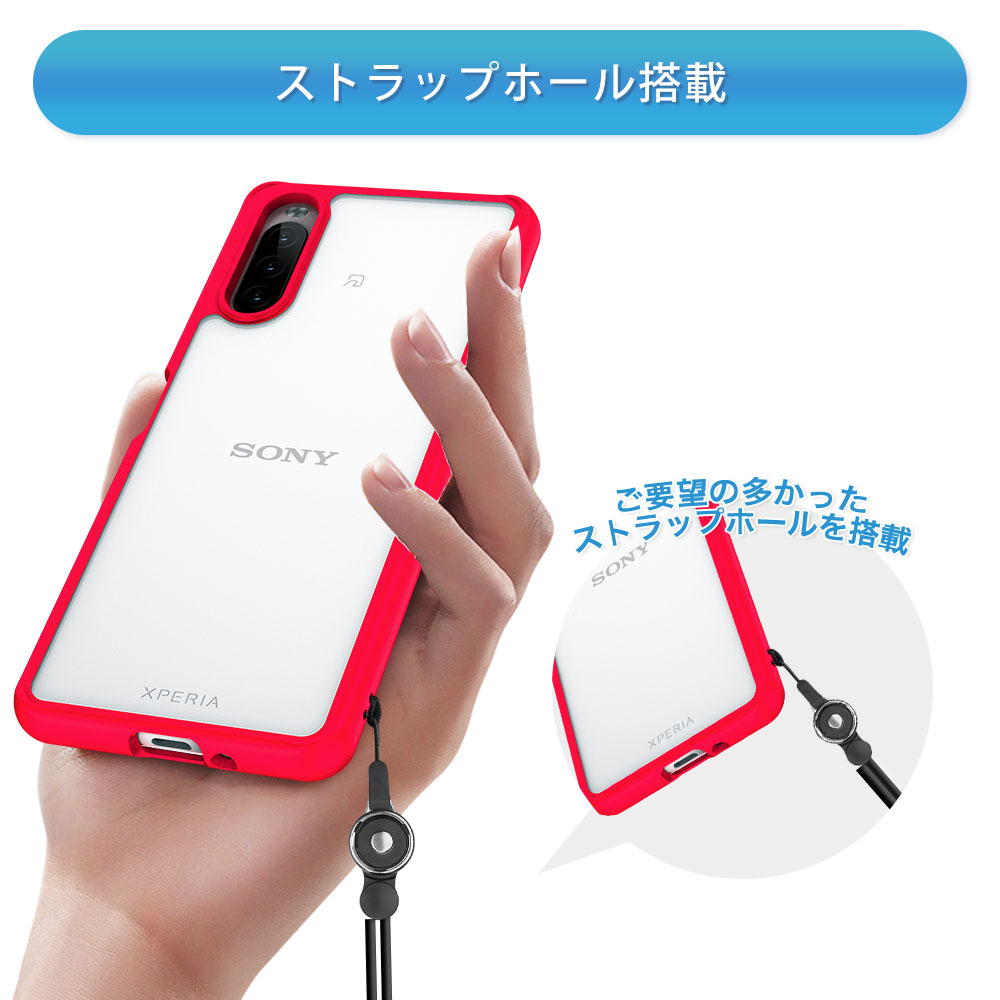 Hy+ Xperia10 iii カラーボタン 耐衝撃 ハイブリッドケース SO-52B SOG04 ストラップホール 米軍MIL規格 TPU PC ケース レッド