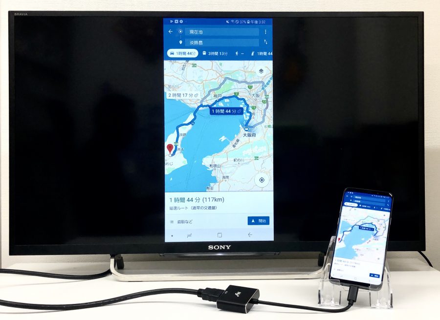 Galaxy S9+(SC-03K、SCV39)の画面をHDMI変換アダプターを使いテレビに出力しました
