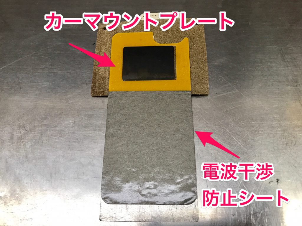 カーマウントプレート、電波干渉防止シート貼り付け