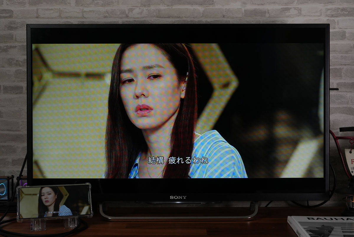 本編を再生するとテレビには横向きに映し出されます。音声もテレビから出て、画面の拡大縮小も可能です。また、字幕の表示も確認が取れました。