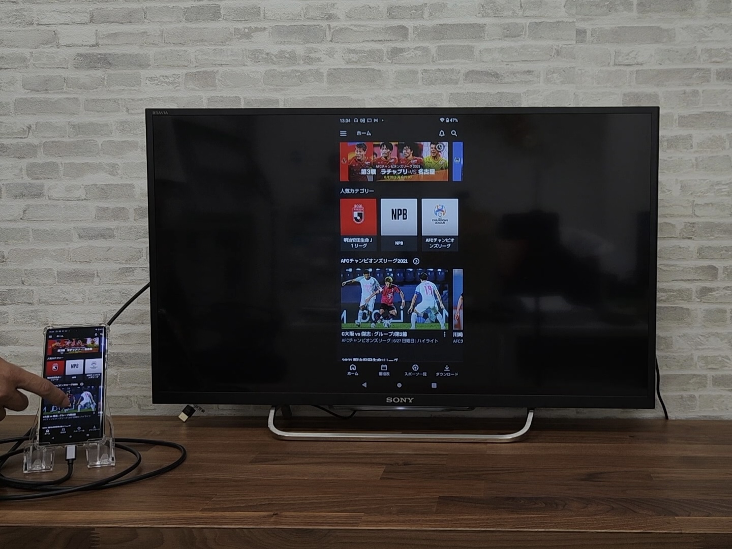 AQUOS R6をHDMI出力でミラーリングさせてテレビに映し出しました