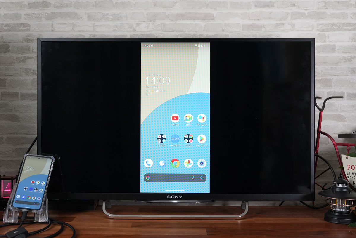 AQUOS sense9 SH-53E SHG14 SH-M29をHDMI出力でミラーリングさせてテレビに映し出しました