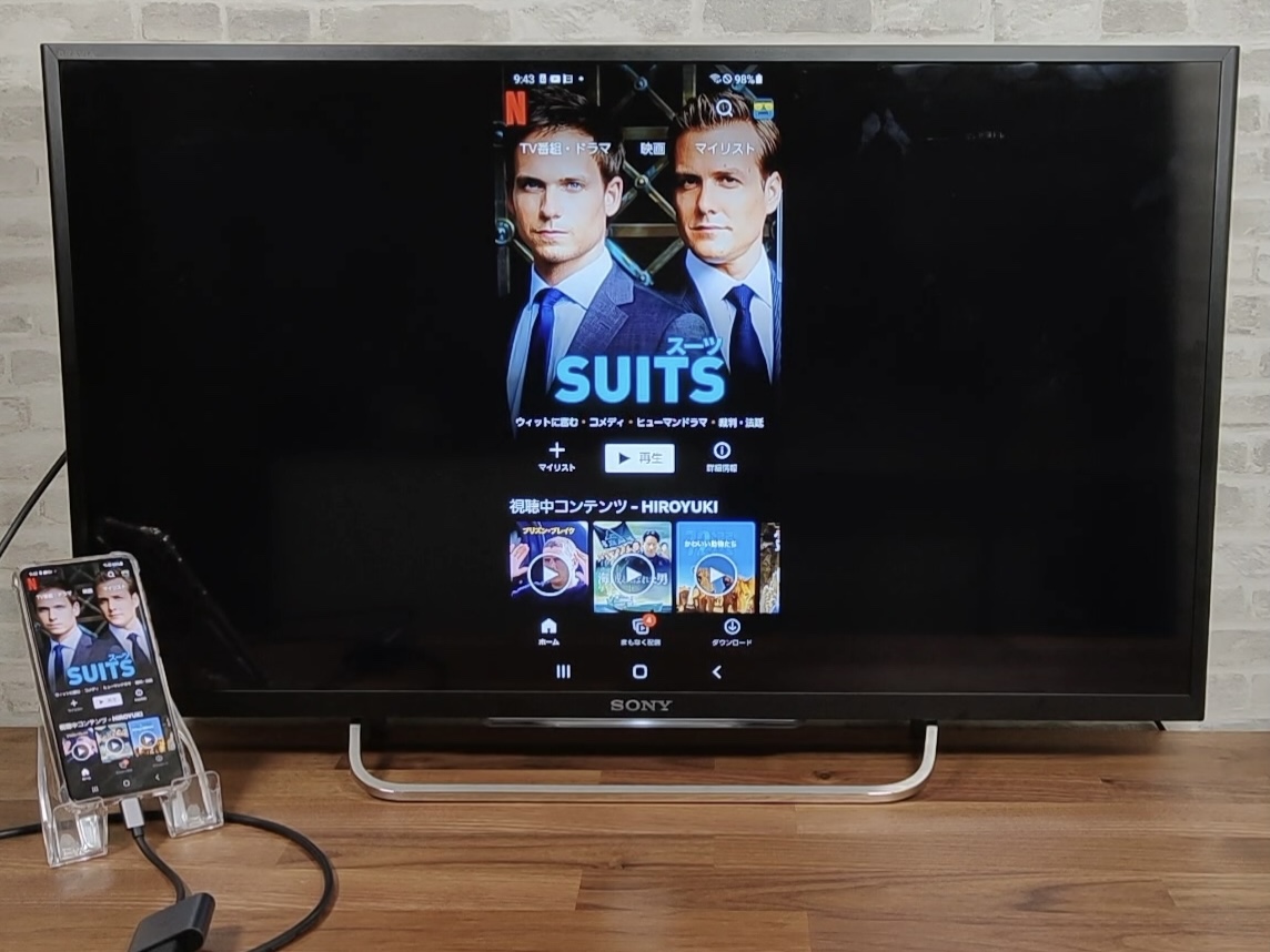 最初に、Netflix(ネットフリックス)をテレビ出力してみました。作品数が多く、ダウンロードが可能な点やプランによっては複数の機器で同時視聴(最大4台)ができる点もメリットですね。