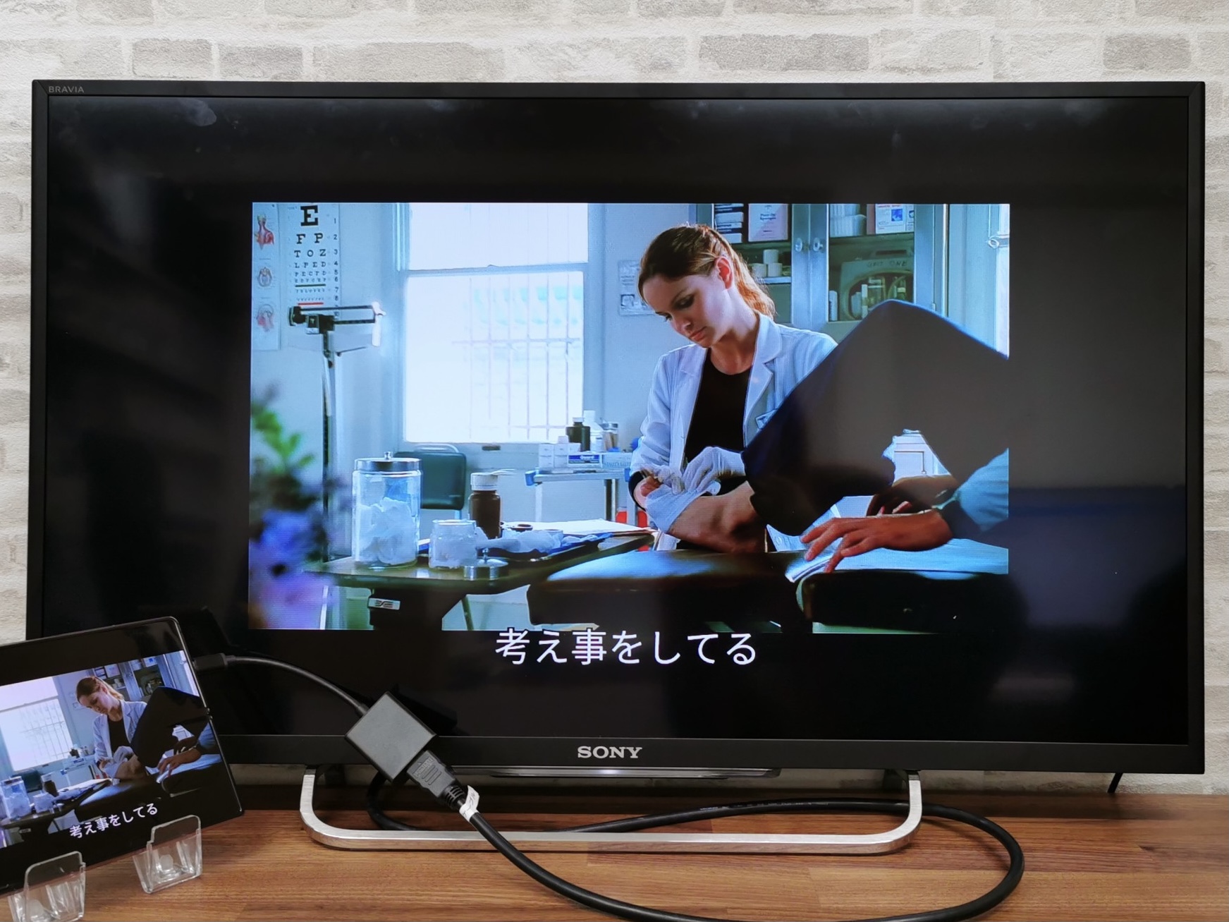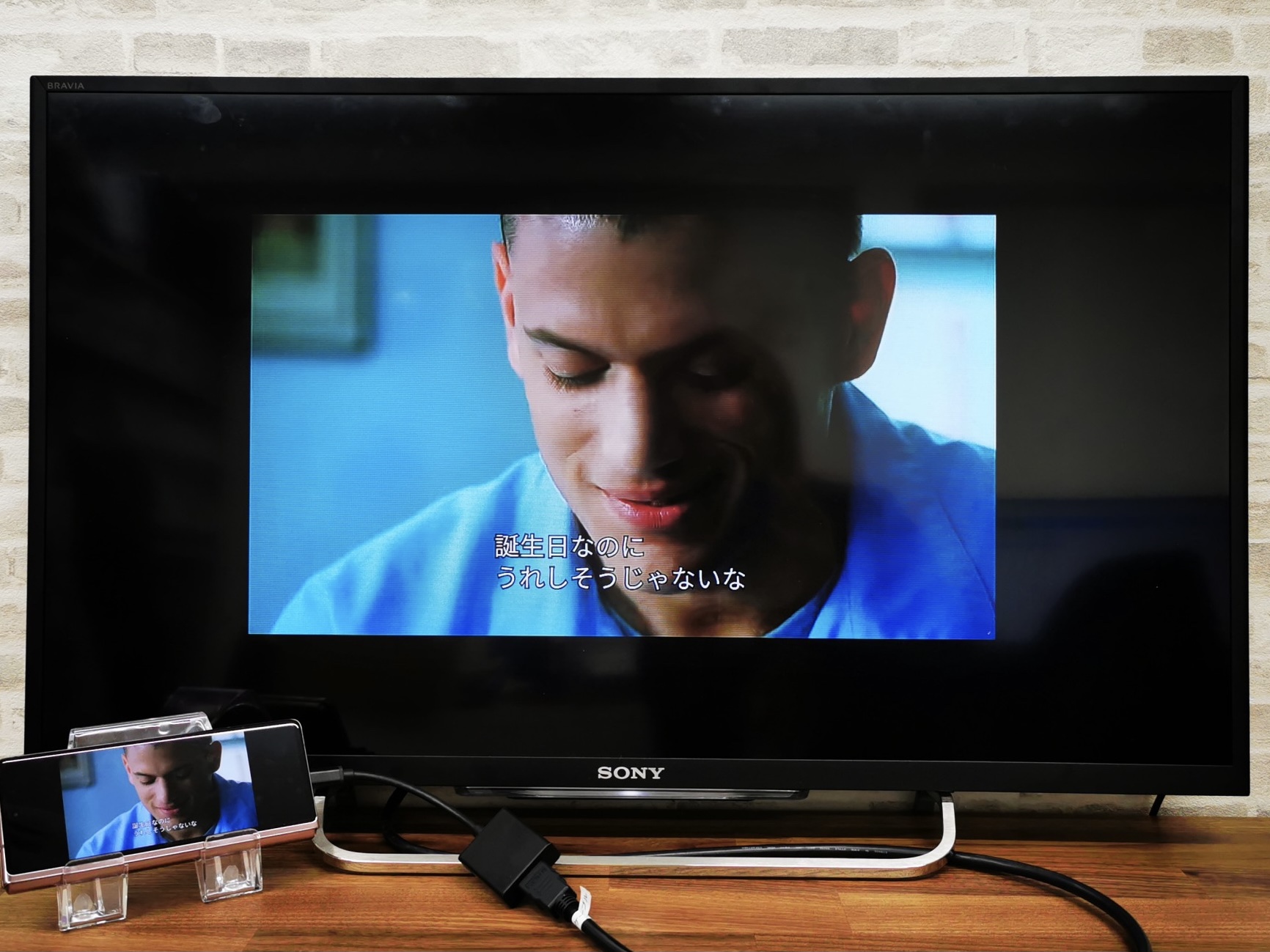 本編を再生するとスマホの向きに関係無くテレビには横向きに映し出されます。また、画面の拡大縮小も可能で、字幕の表示も確認が取れました。