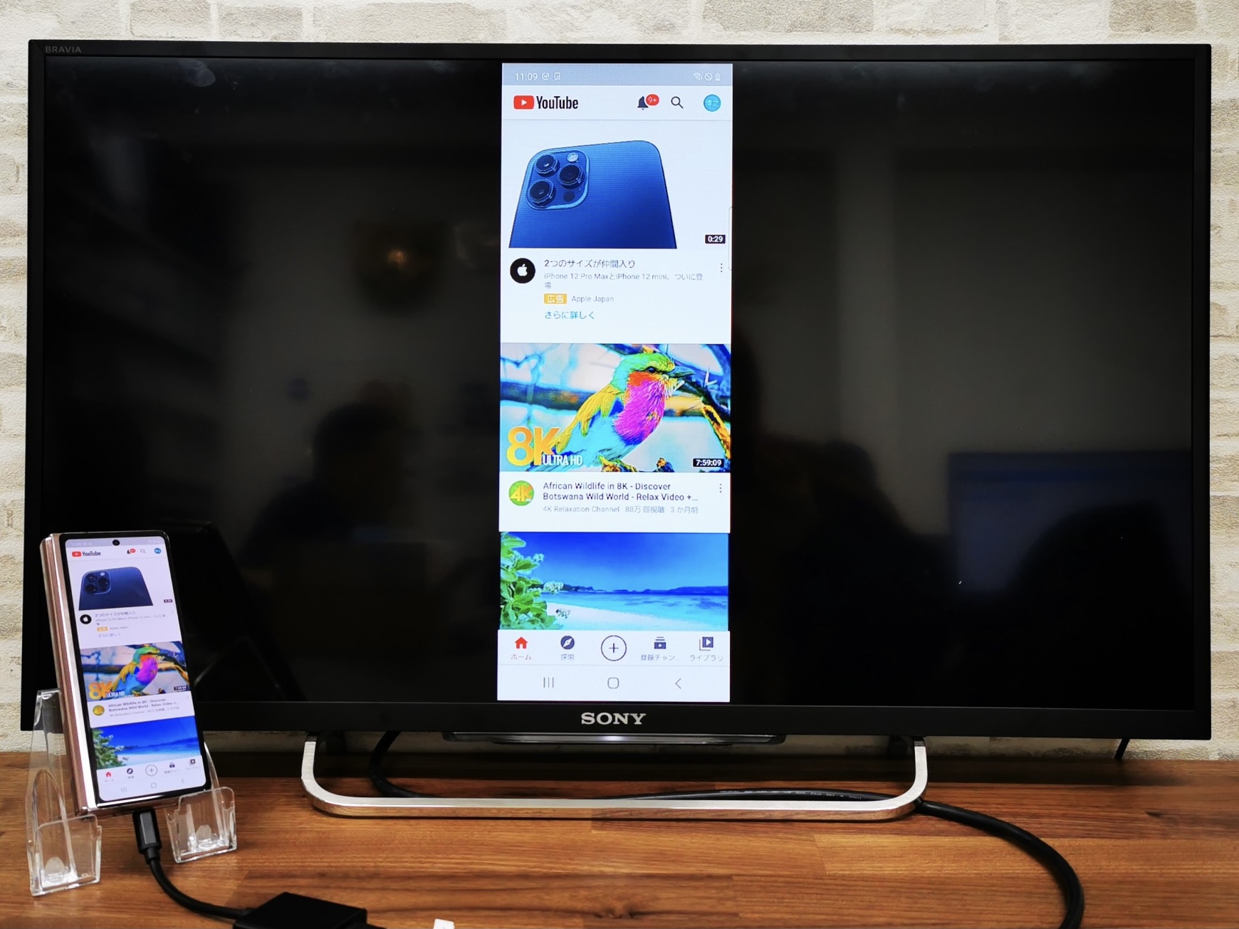 YouTubeをテレビに映し出す