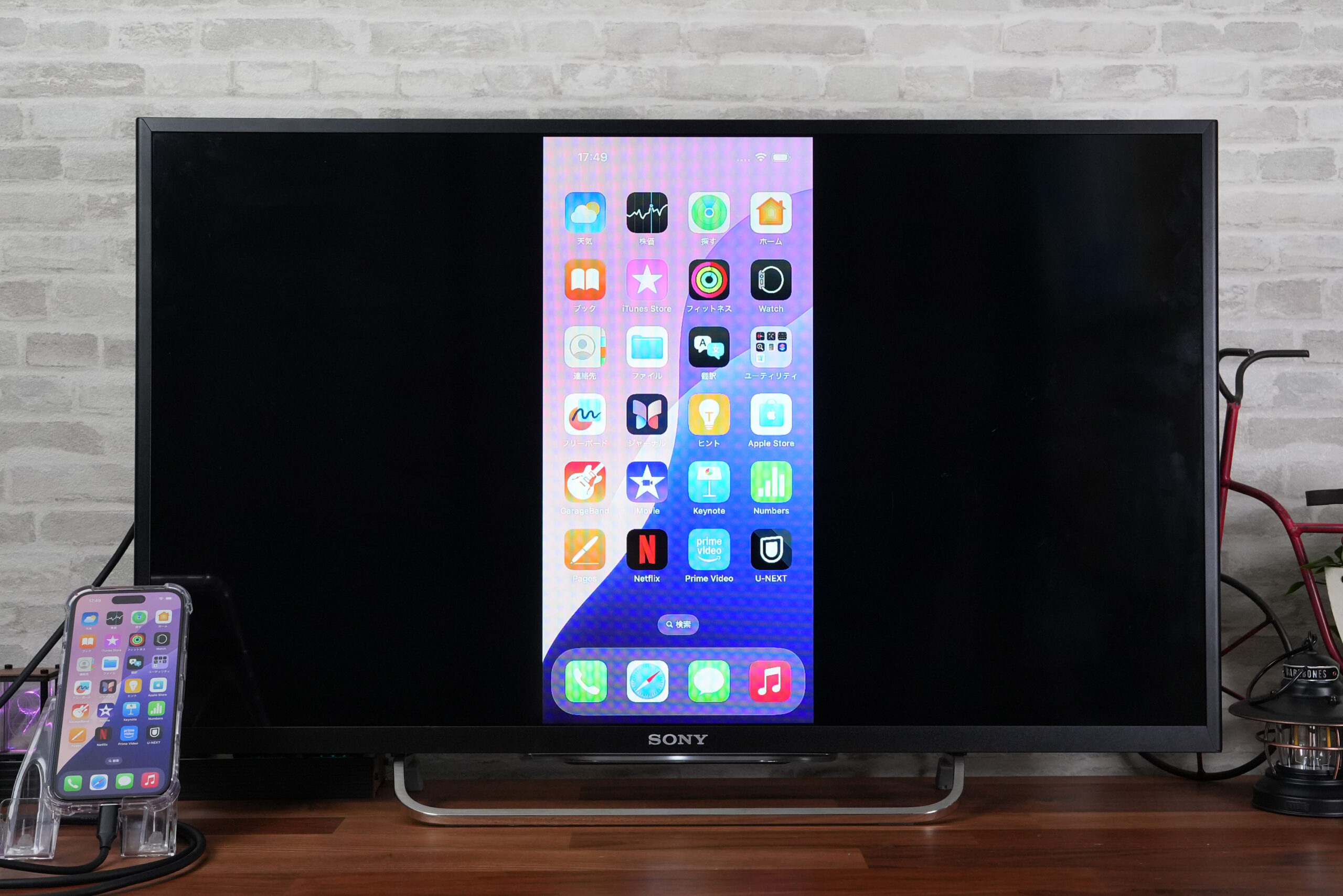 iPhone16 PlusをHDMI出力でミラーリングさせてテレビに映し出しました
