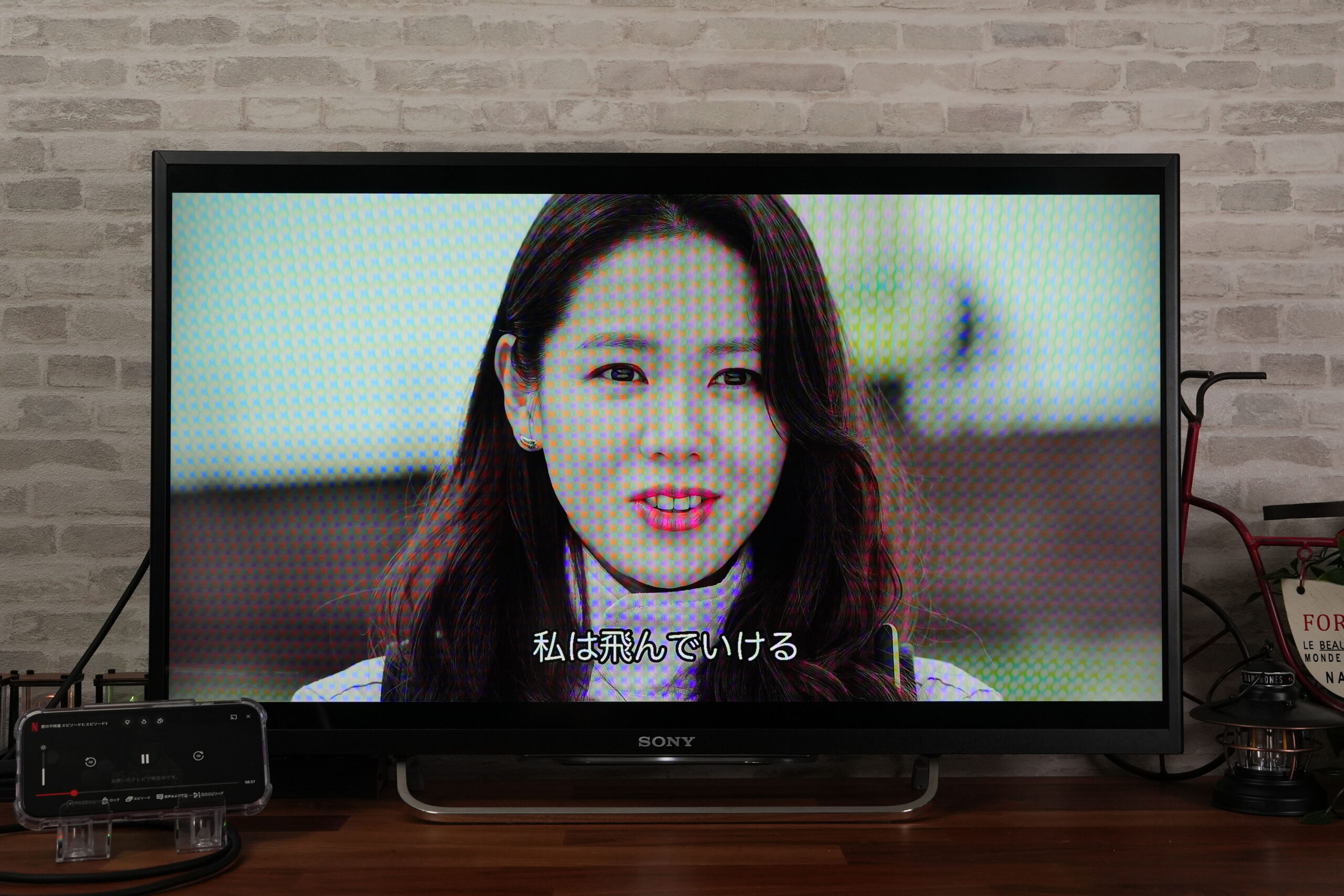本編を再生するとテレビには横向きに映し出されます。音声もテレビから出て、画面の拡大縮小も可能です。また、字幕の表示も確認が取れました。