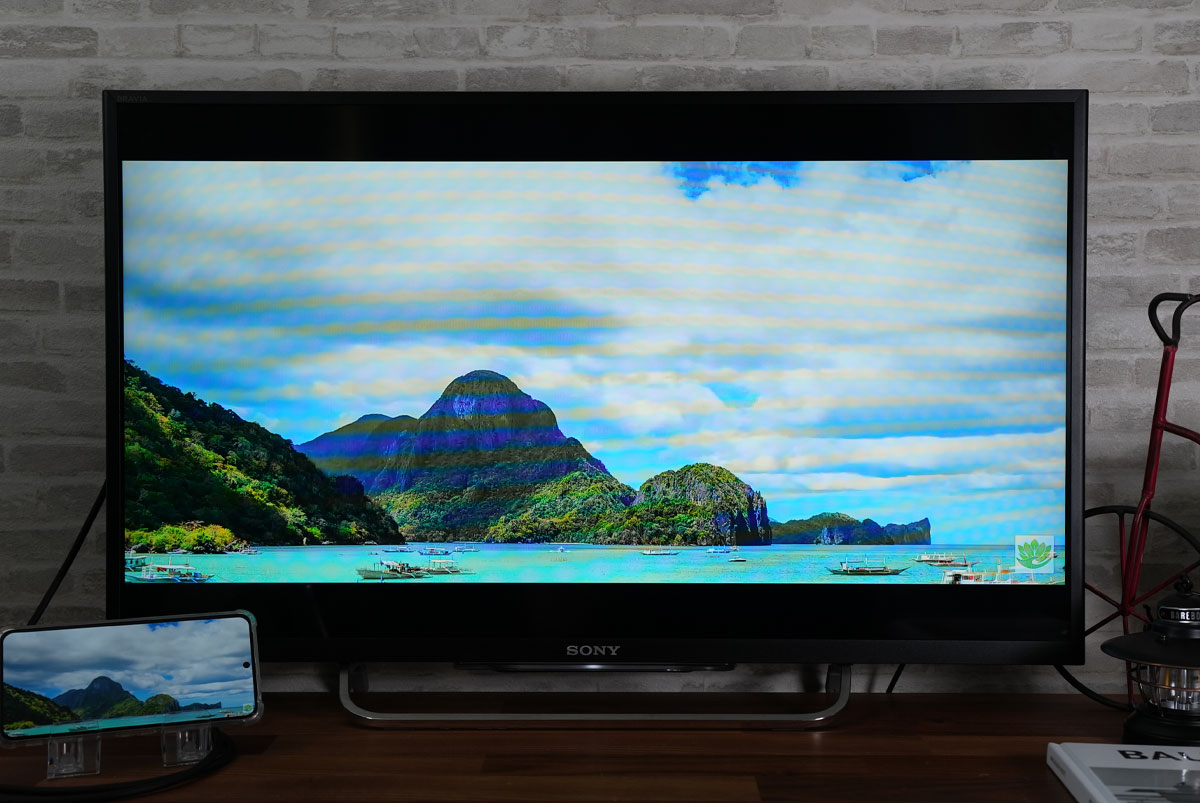 Pixel8とHDMI変換アダプタを接続すると、テレビにスマホの画面が映し出され接続は完了です。